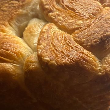 Layers of flaky, buttery sourdough croissant dough braided and baked to golden perfection — pure bliss in every bite.