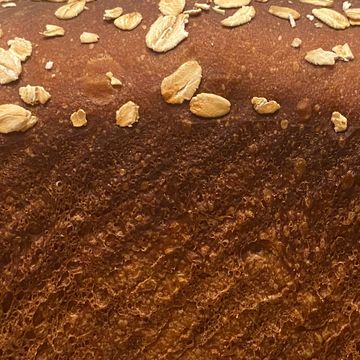 Hearty whole wheat, rolled oats, sweet honey, and rich molasses come together in this nourishing sourdough loaf. A deep, rustic flavor with a touch of sweetness.